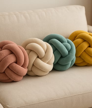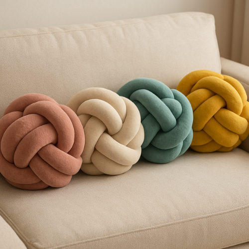 Knot pillows are soft, decorative cushions shaped by weaving fabric into intricate knots.